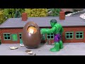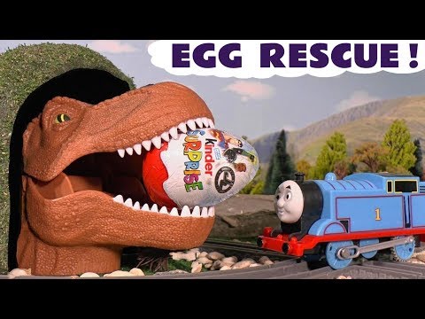 Thomas The Tank Engine helps Hulk and Spiderman recue 2 Kinder surprise eggs from a crocodile and a dinosaur. They have to use the Nursery Rhyme Johny Johny Yes Papa to rescue them but they get there eventually. The Kinder Eggs are from Dc Justice League and the Minions. Fun stop motion animation for kids and children.