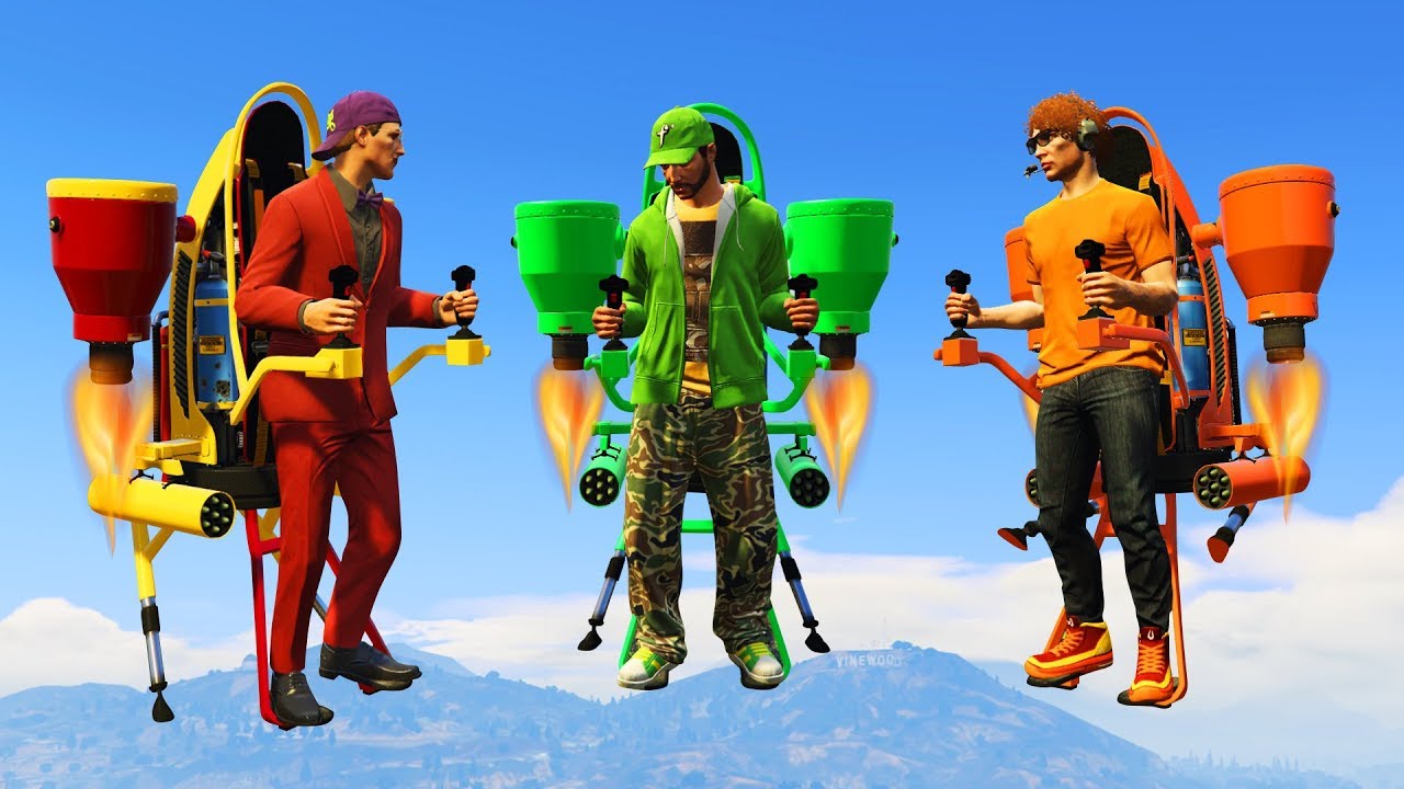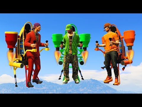In this video, Slogoman, Jelly and Kwebbelkop check out GTA 5's latest Doomsday Heist DLC! Watch as they customise their own jet packs before taking them for a test flight through the city! Be sure to watch till the end to see their bridge flight challenge!