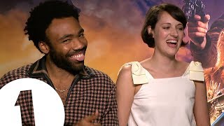 Donald Glover - Childish Gambino himself - and Phoebe Waller-Bridge talk to BBC Radio 1's film critic Ali Plumb about their favourite TV shows, which Lando and L3-37 mementos they got to keep and what it was like shooting Solo: A Star Wars Story in Britain.