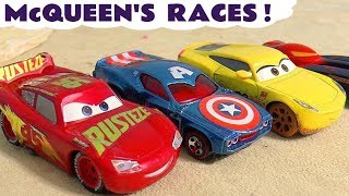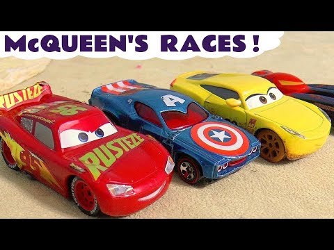 Cars Lightning McQueen races Hot Wheels Avengers and Superheroes with funny Funlings TT4U ─ Toy Trains 4u