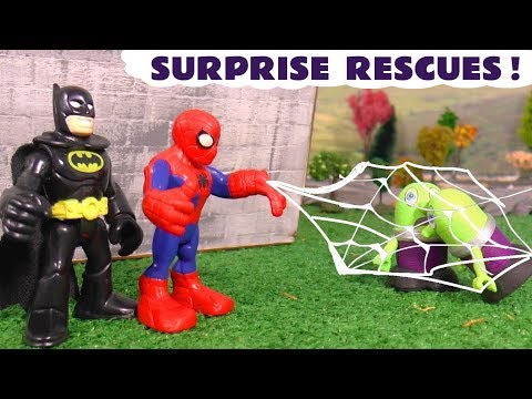 Funny Funlings Surprise Rescues By Batman And Spiderman With Cars McQueen TT4U ─ Toy Trains 4u